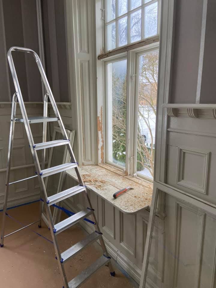 2. Bevarad charm– Traditionellt hantverk återställer och framhäver tidstypiska detaljer, så att fönstrens unika karaktär bevaras.